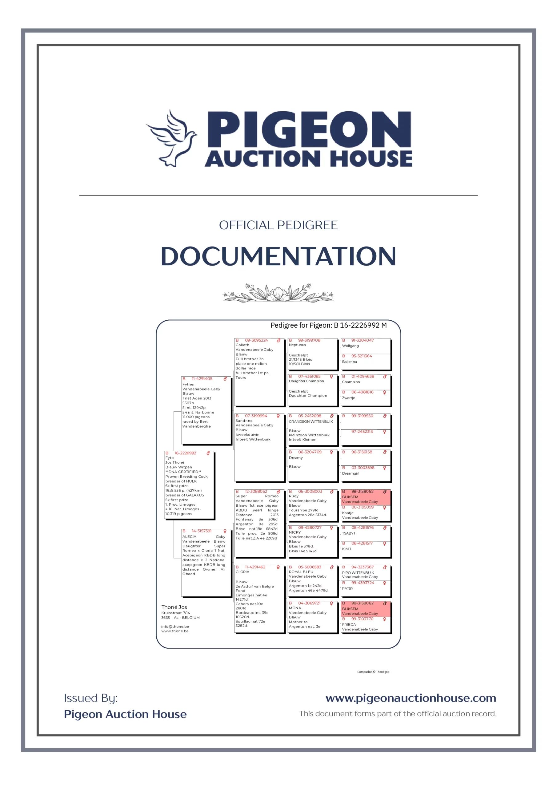Speedy is an elite racing pigeon developed for performance-driven lofts where speed and consistency matter. He displays an explosive take-off, strong wing action, and exceptional line-holding ability, making him well suited to short and middle-distance racing. His athletic build, excellent muscle tone, and focused racing temperament contribute to reliable, repeatable results under competitive conditions. Speedy is ideal for breeders and racers looking to strengthen their loft with proven speed genetics and a pigeon built to perform.